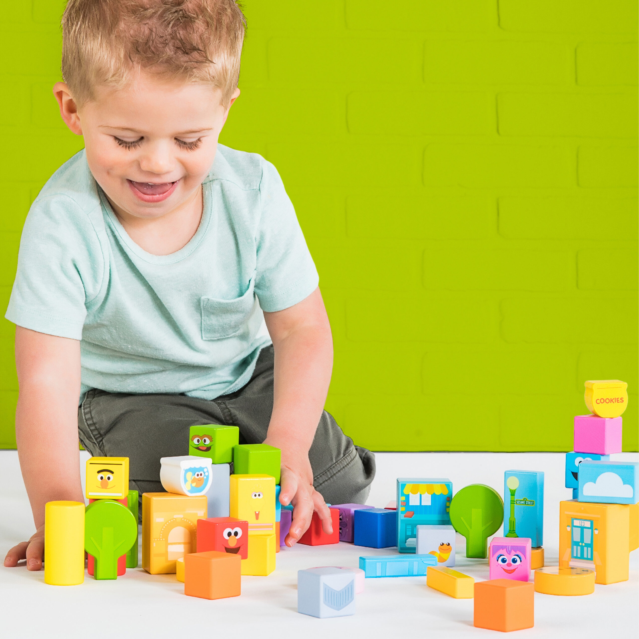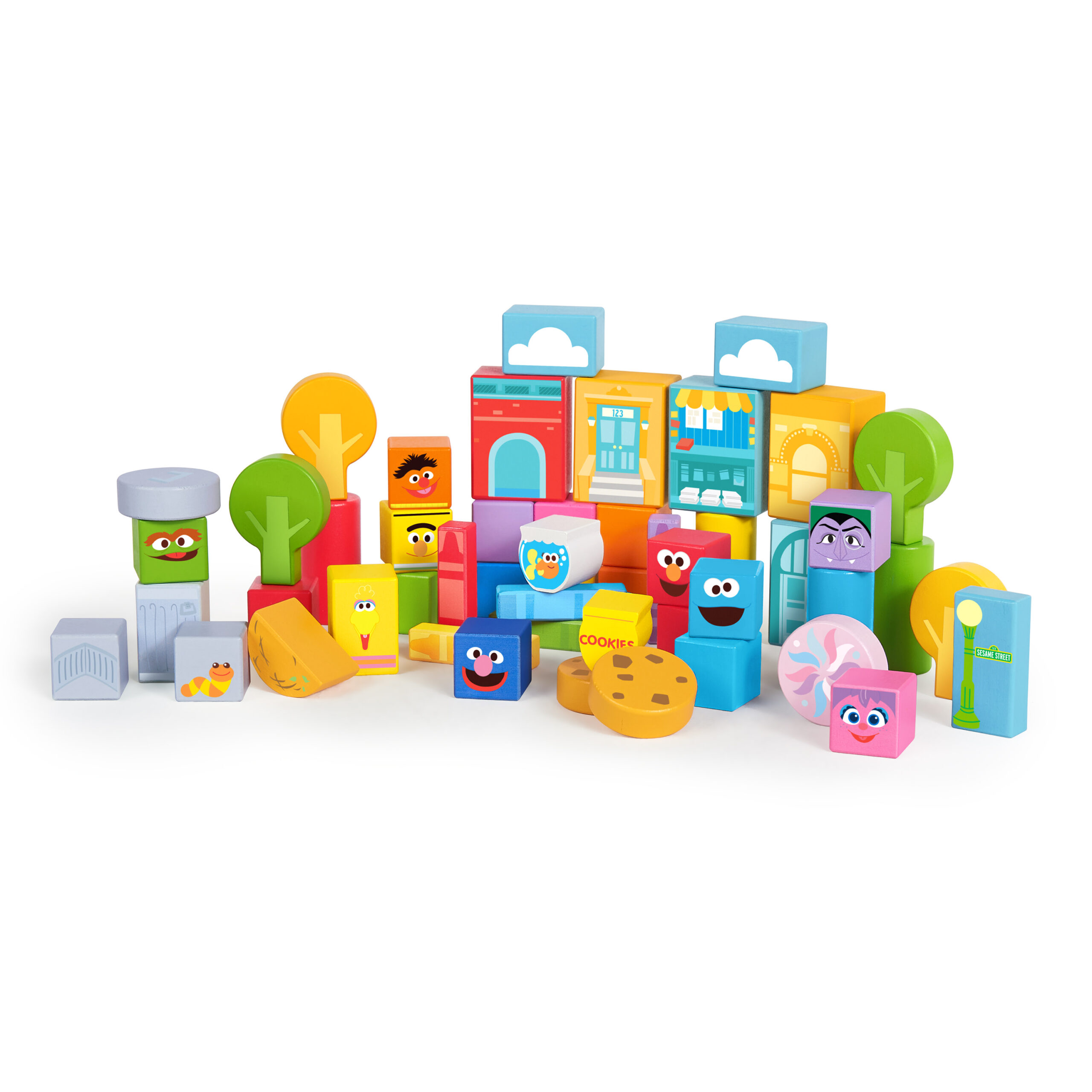 Baby knows how to get to Sesame Street — just head straight into the living room! The Set-the-Scene Sesame Street block toy set by Bright Starts brings baby’s favorite neighborhood right to your home. Fifty colorful wooden pieces give baby the power to tell her own story with her favorite cast of characters. Where will Grover’s adventure lead? Who does Big Bird want to visit? And where are Cookie Monster’s cookies? These colorful wooden pieces encourage the development of fine motor skills as baby sorts, stacks and builds new experiences for her friends. These stacking toys create an imagination station that empowers baby to experiment with different shapes, colors and objects. Every door will open wide as baby plays where the air is sweet — right in the heart of Sesame Street! Recommended for 12-36 months.
