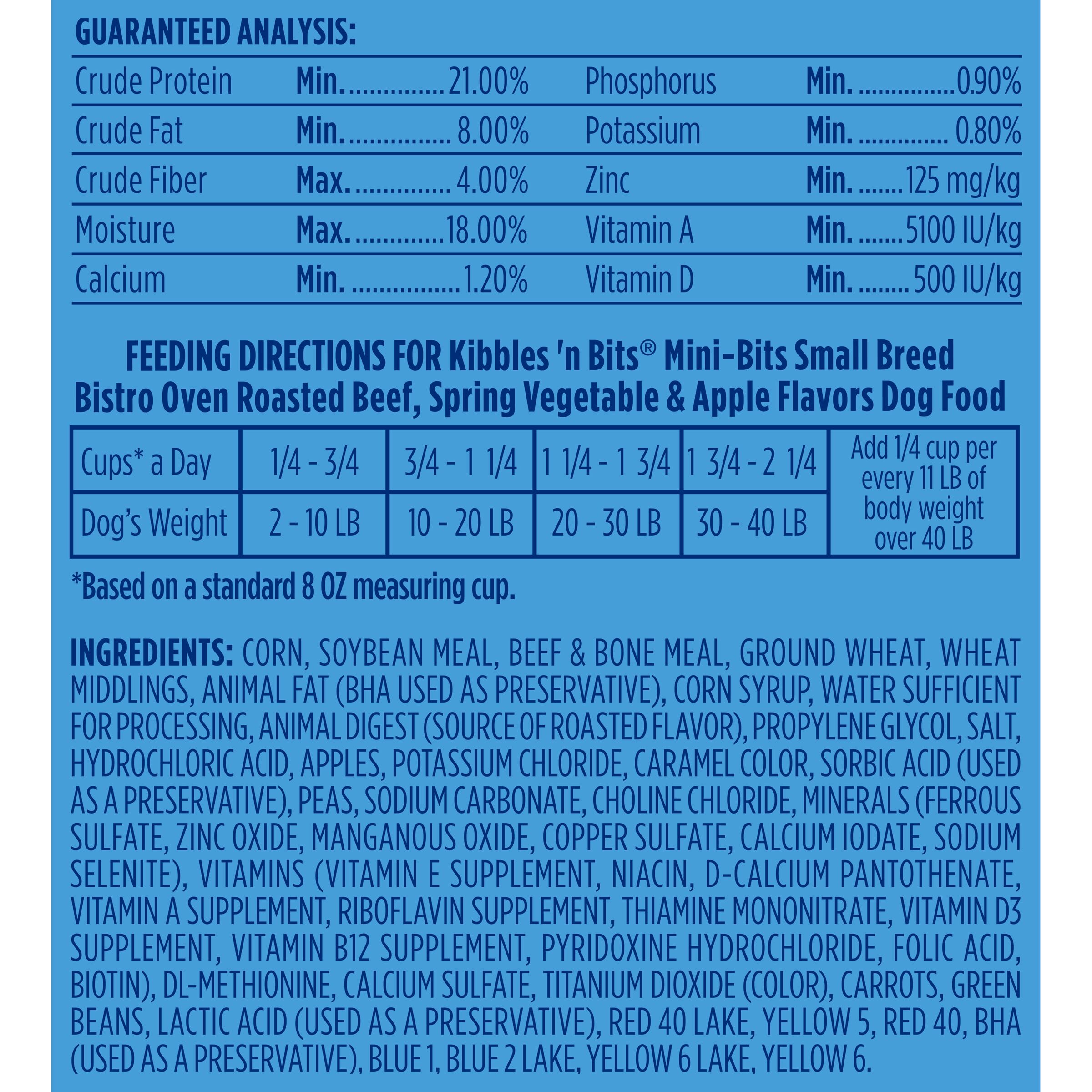 As part of our Chef’s Choice line of culinary-inspired foods, every bite of Kibbles ?n Bits Bistro Oven Roasted Beef Flavor dog food is bursting with a medley of bistro-style flavors. Thoughtfully prepared with the tastes of oven roasted beef, spring vegetables, and baked apple, this irresistible meal is made with high-quality ingredients that offer your dog complete and balanced nutrition. It’s a deliciously satisfying meal you can feel good about serving your dog every day!