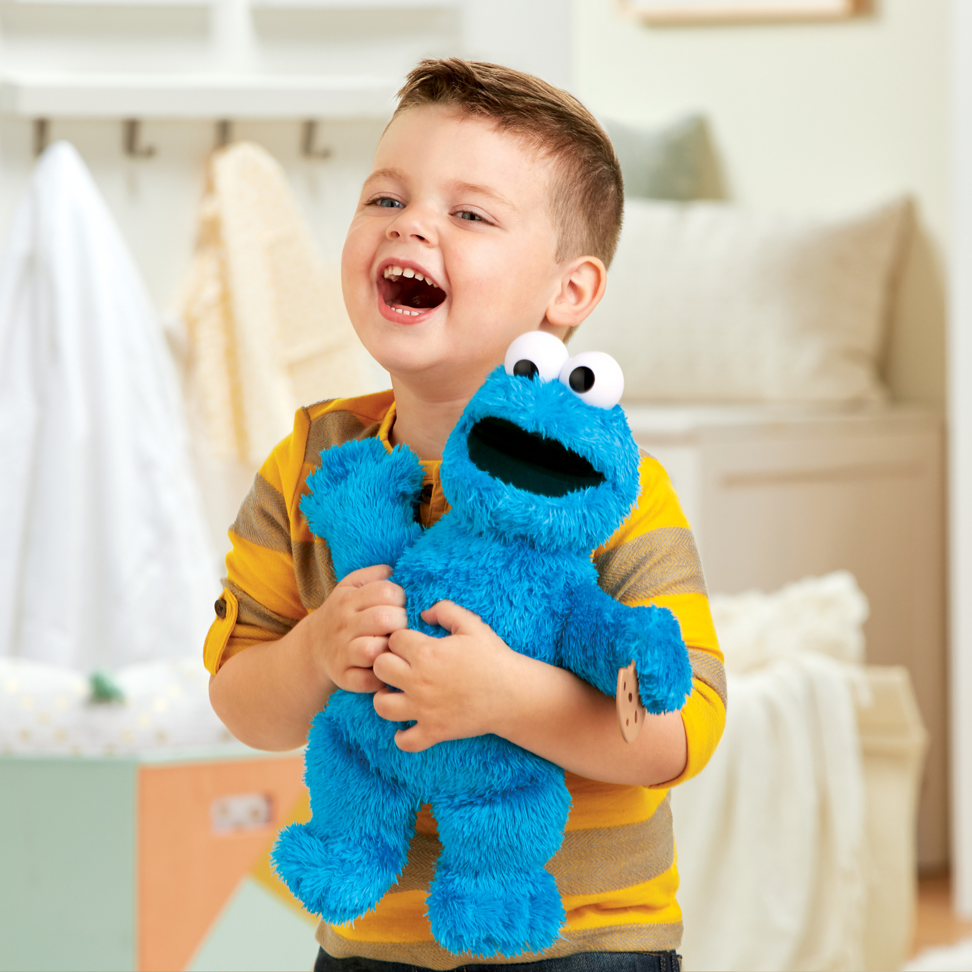 - Press Cookie Monster’s tummy for silly phrases and to hear him sing